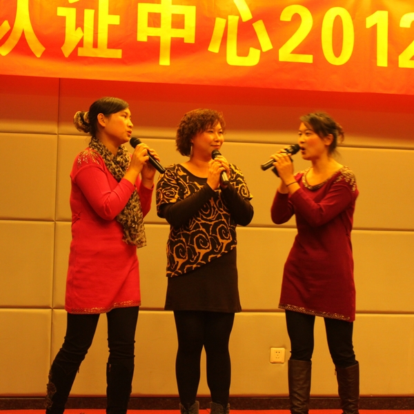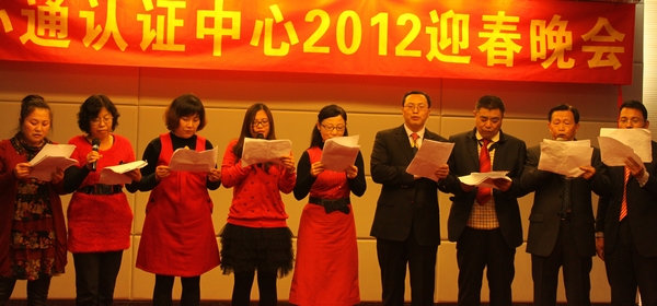 首先,蔡晓红总经理为我们做了2012年度的工作总结,接下来,曲辛田董事长为我们进行了新年致辞。市场监管局认证监督处卢处长和环通管委会杨主任也分别为我们带来了精彩的讲话,赢得了满场的掌声。