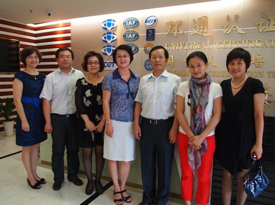 2013年6月6日,国家认监委(CNCA)陈悦主任、市场监督局郭力军处长一行人莅临我中心参观指导,曲辛田主任与蔡晓红总经理热情接待了陈悦主任一行人。